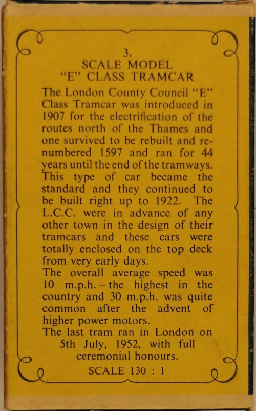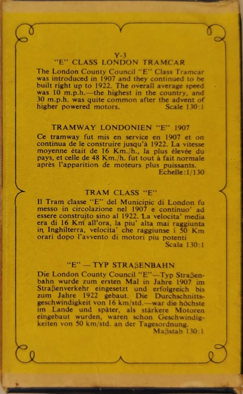 Models of Yesteryear Y-3/A; 1907 London E Class Tram 1956 - 1965