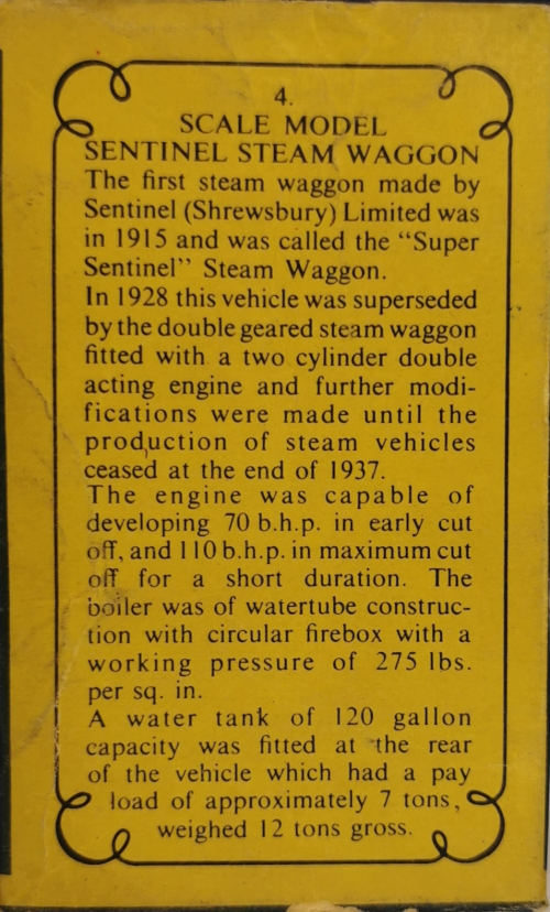 Models of Yesteryear Y-4/A; 1928 Sentinel Steam Waggon 1956 - 1960