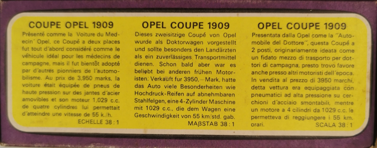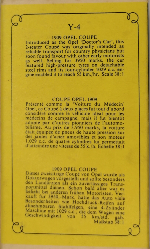 Models of Yesteryear Y-4/C; 1909 Opel Coupe 1967 - 1976