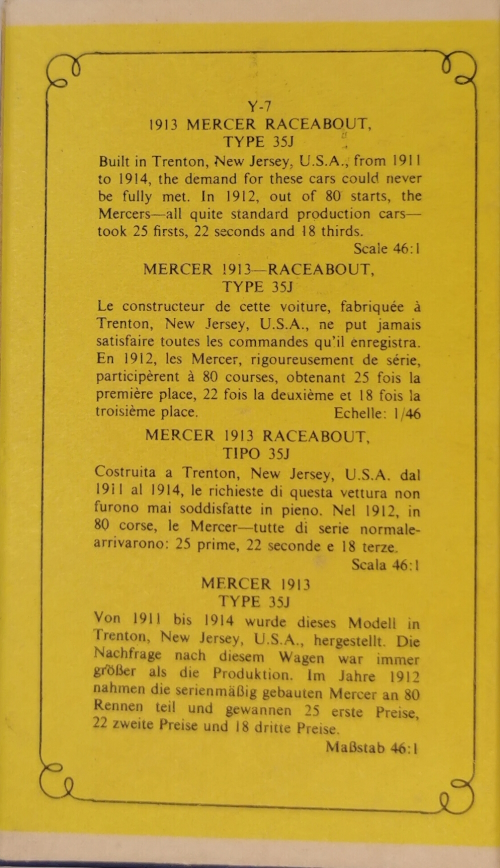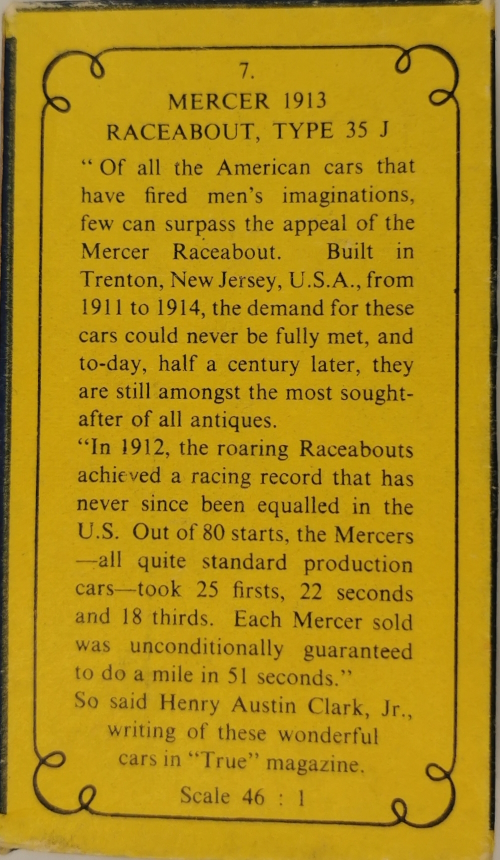 Models of Yesteryear Y-7/B; 1913 Mercer Raceabout 1961 - 1967