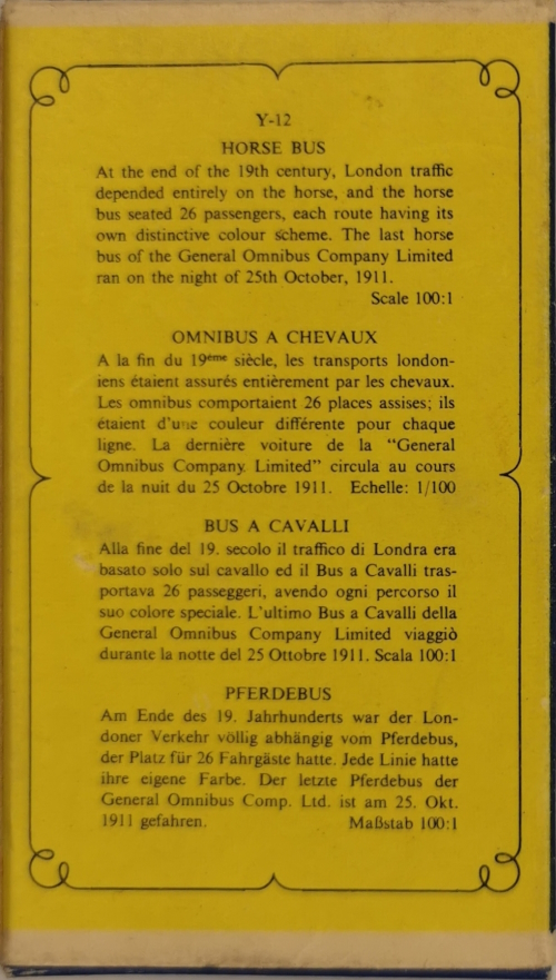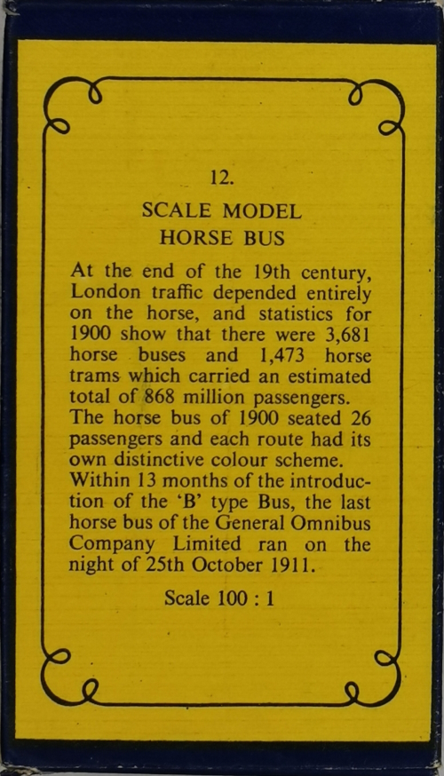 Models of Yesteryear Y-12/A; 1899 London Horse-Drawn Bus 1959 - 1966