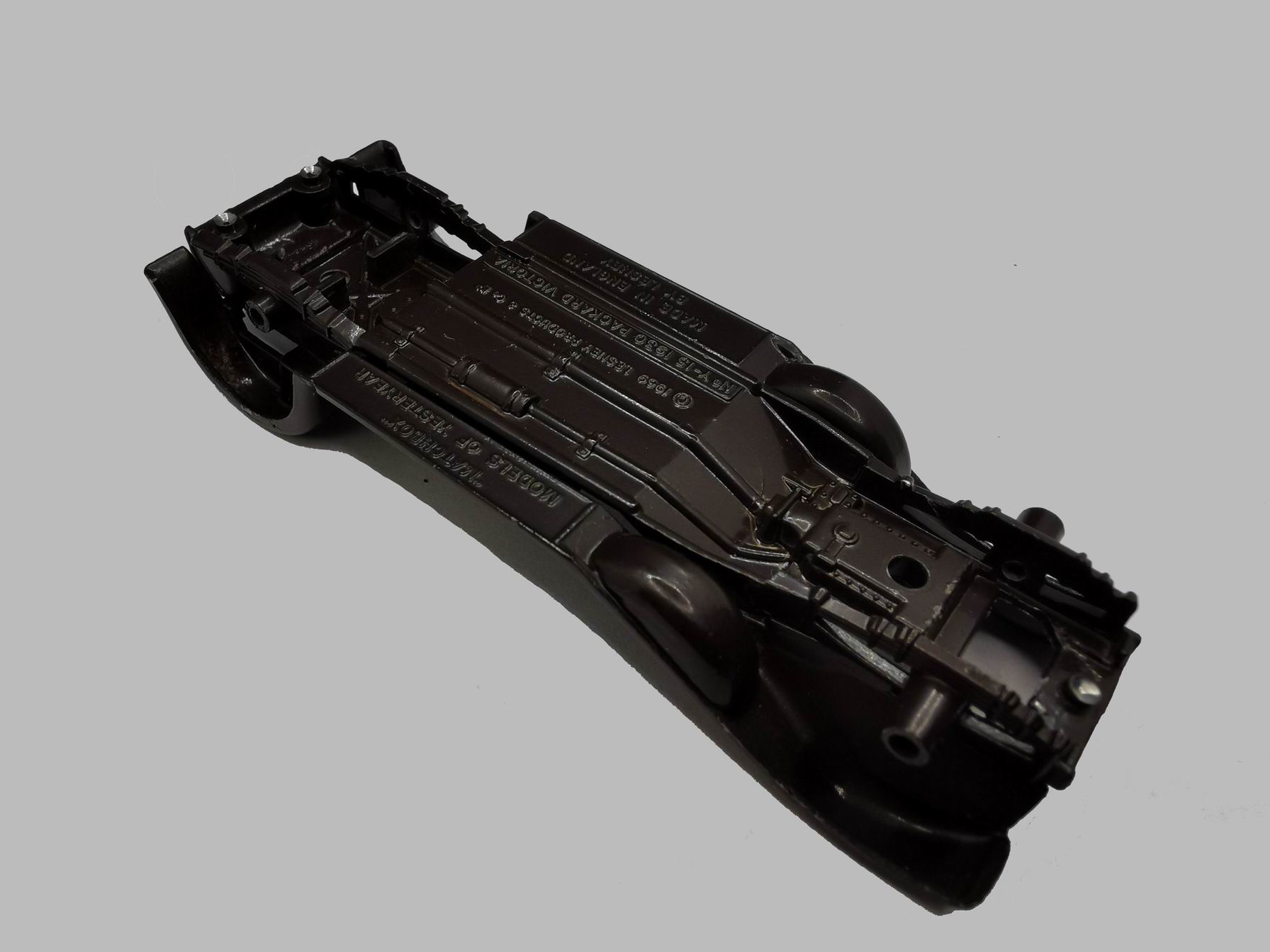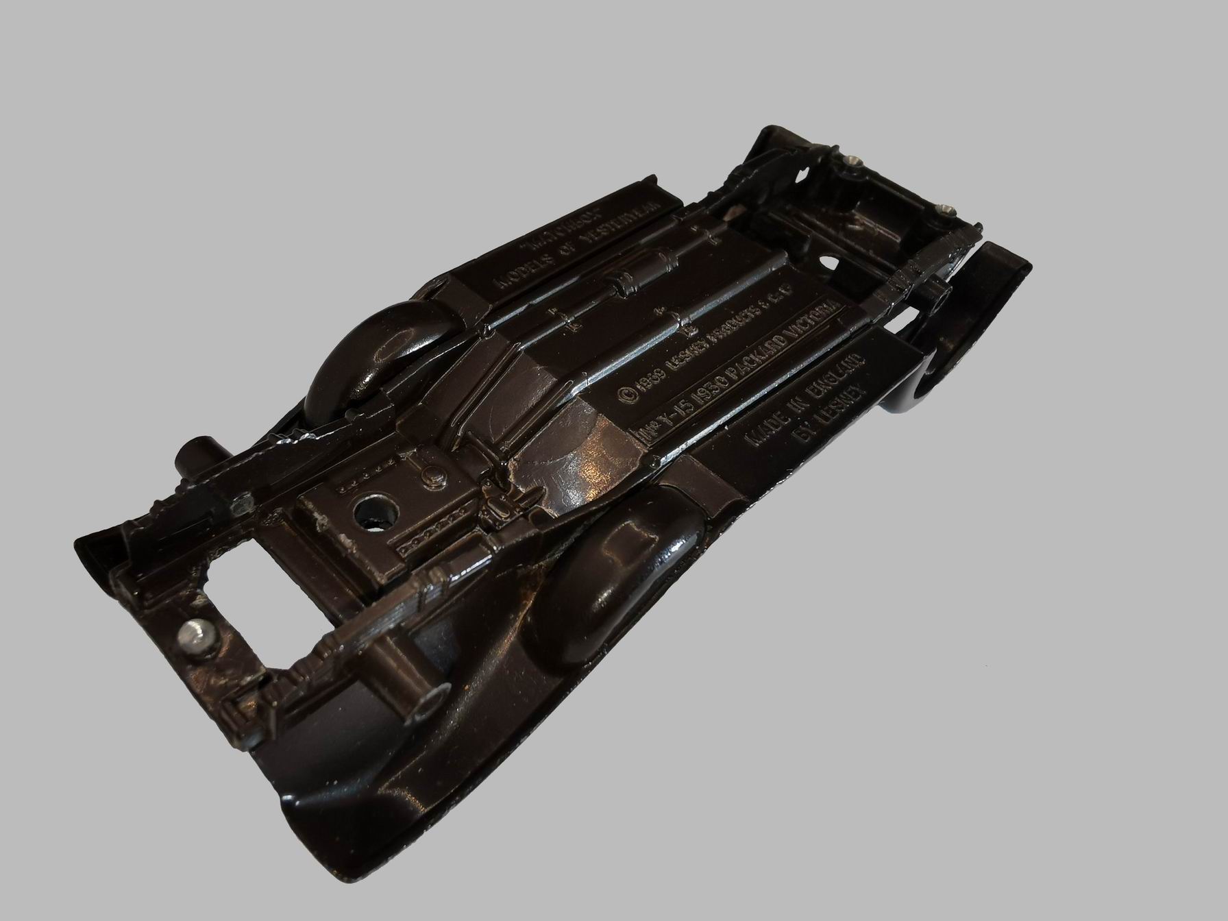 Models of Yesteryear Y-15/B; 1930 Packard Victoria 1969-1987 KOVOVÉ ODLIATKY PLASTOVÉ KOMPONENTY 01 Podvozok P01 Strecha 02 Karoséria P02 Interiér 03 Čelný panel P03 Volant 04 Rám chladiča + svetlá P04 Kufor 05 Kolesá + rezervy P05 Pneumatiky 06 Nárazník predný P06 Maska chladiča 07 Nárazník zadný OSTATNÉ O01 Osky O02 Oska rezervných kolies Dĺžka: 109 mm Šírka: 39 mm Výška: 39 mm Hmotnosť: 106 g Mierka: 1:46 01 Podvozok 01 Podvozok - zmeny 01 Opierky zadnej osy 01 Áno 02 Nie 1969 -1971 1971 02 Náliatky 01 Áno 02 Nie 1969 1969 - 1972 02 Karoséria 03 Čelný panel 03 Čelný panel - zmeny 01 Uloženie volantu 01 Vysoké 02 Nízke 1969 1969 - 1972 04 Rám chladiča a svetlá 05 Kolesá + rezervy 05 Kolesá 01 Typ kolies 01 W10 (K10) 1969 - 1972 06 Nárazník predný 07 Nárazník zadný 07 Nárazník zadný - zmeny 01 Číslo na spodnej časti 01 Y-15 1 02 Y-15 2 03 Y-15 3 04 Y-15 4 05 Y-15 5 06 Y-15 6 02 Medzera mezi ŠPZ a rámom 01 Úzka č.3 02 Stredná č.5 03 Široká č.1,2,4,6 P01 Strecha P02 Interiér P03 Volant P03 Plastový volant 01 Typ volantu 01 P3 1969 - 1972 P04 Kufor P05 Pneumatiky P06 Maska chladiča O01 Osky O02 Oska rezervných kolies Na stránke boli použité fotografie z kníh a WWW: Pavel Lagner Souhrnný přehled MATCHBOX MODEL OF YESTERYEAR 1956 – 2006 Alexandr Pícha & Pavel Lagner The Collector’s Guide To MATCHBOX Models of Yesteryear 1956 – 1972 Alexandr Pícha & Libor Mikš Velká kniha o modelech MATCHBOX Models of Yesteryear 1956 – 1972
