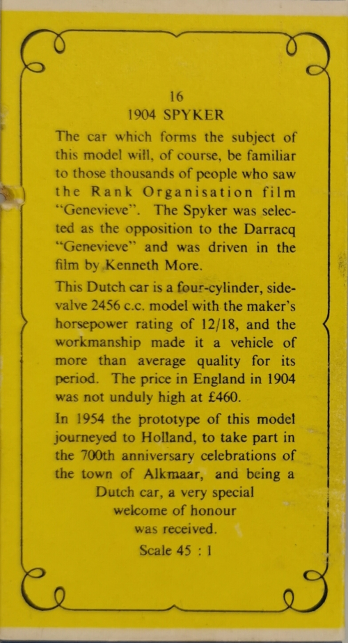 Models of Yesteryear Y-16/A; 1904 Spyker Tourer 1962 - 1972