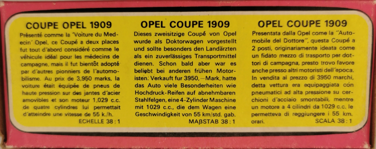 Models of Yesteryear Y-4/C; 1909 Opel Coupe 1967 - 1976