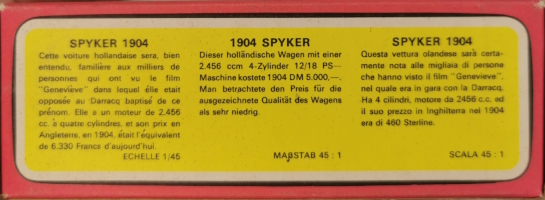 Models of Yesteryear Y-16/A; 1904 Spyker Tourer 1962 - 1972